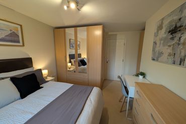Very large double overlooking the pretty landscaped back garden. On an almost self contained floor with its own shower room. Fully furnished with lots of storage space and room for further furniture.